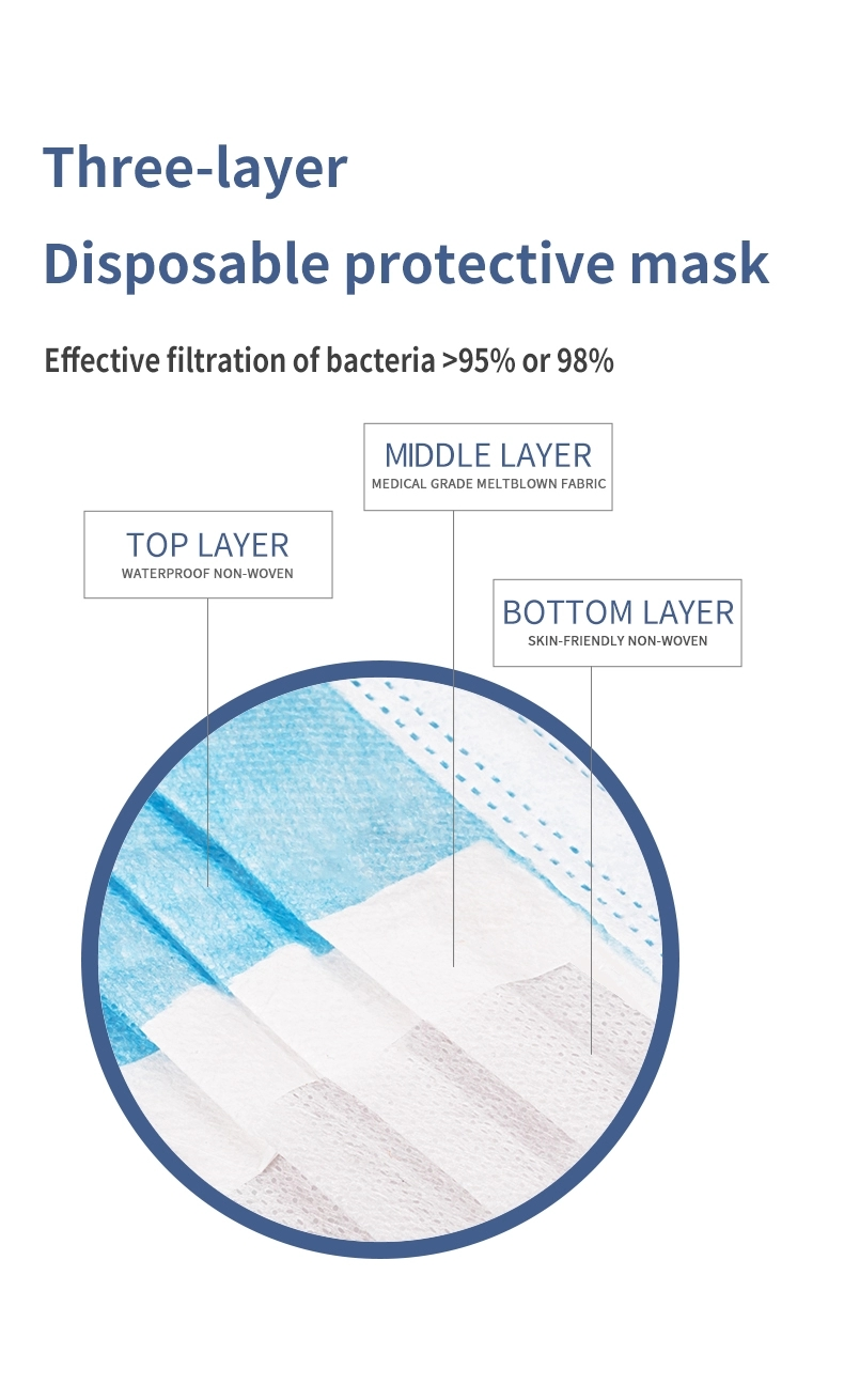 Material : Non-woven + meltblown+ear lopp+ nose wire